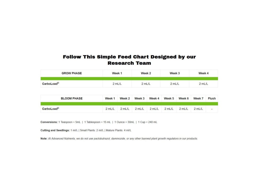 Přípravek CarboLoad je zdrojem potravy pro mikroorganismy a následně pomáhá vytvářet zdravé a plodnější kolonie těchto prospěšných mikrobů. CarboLoad je směs sacharidů zvyšujících výkonnost, zatímco Sweet Leaf dodává rostlině terpenoidy posilující chuť a vůni.
