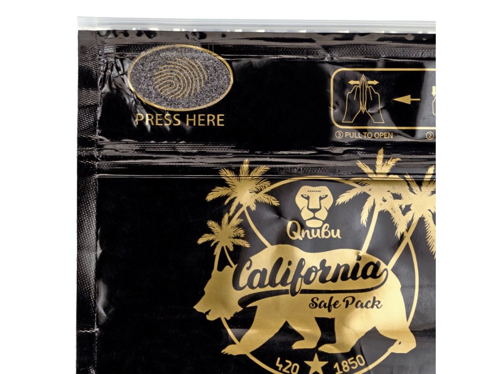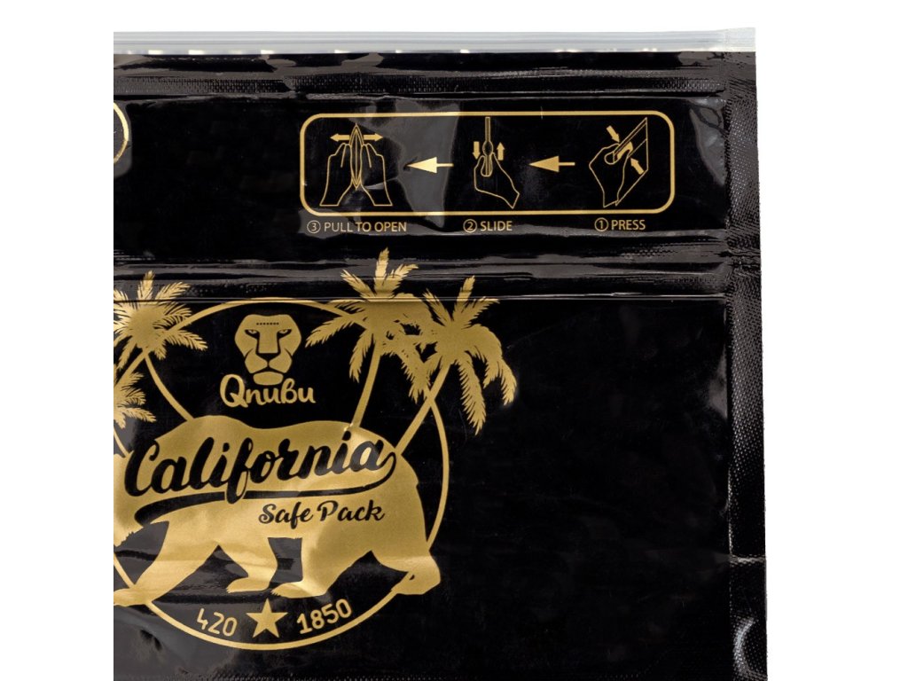 Sáček Press to Open Qnubu California. Odolné proti úniku zápachu. Jednoduché otvírání Press to Open. Dvojitý zip. Kapacita 14 g.