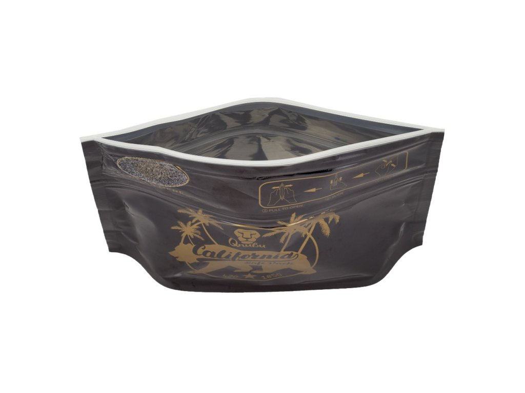 Sáček Press to Open Qnubu California. Odolné proti úniku zápachu. Jednoduché otvírání Press to Open. Dvojitý zip. Kapacita 14 g. 20x15 cm.