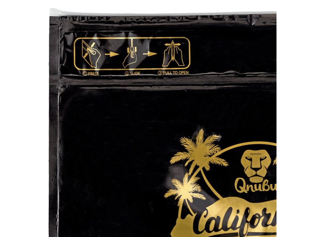 Sáček Press to Open Qnubu California. Odolné proti úniku zápachu. Jednoduché otvírání Press to Open. Dvojitý zip. Kapacita 56 g.