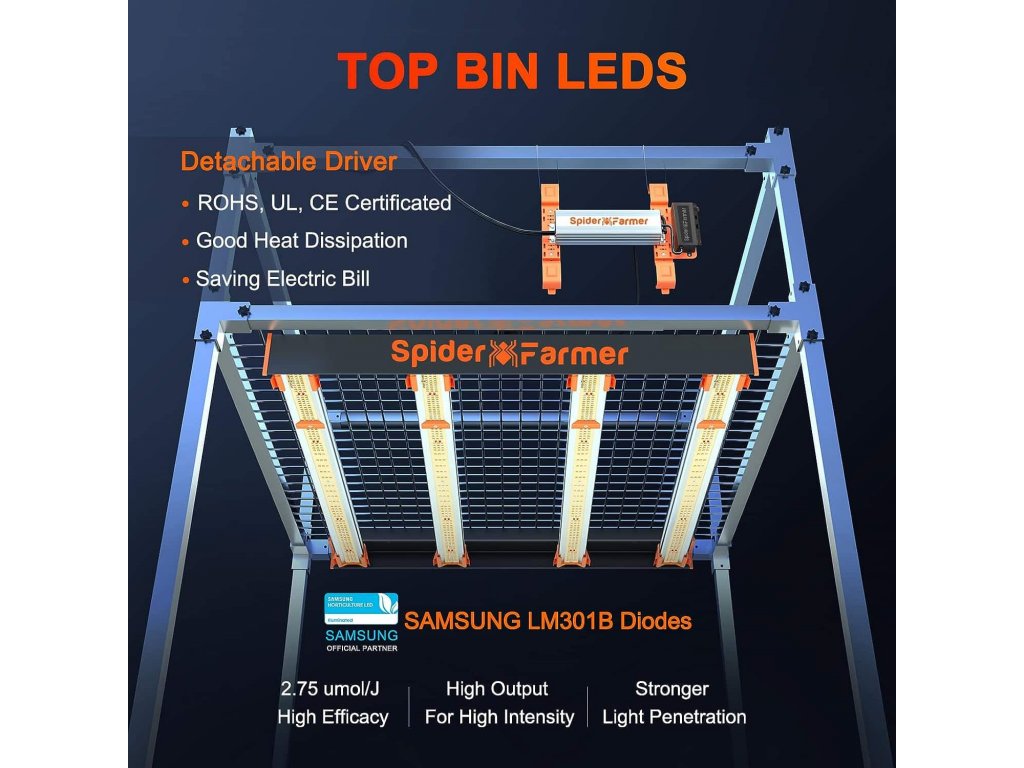 Spider Farmer SE3000 300W PPE 2,75 umol/J LED světlo pro pěstování Samsung LM301B Full Spectrum