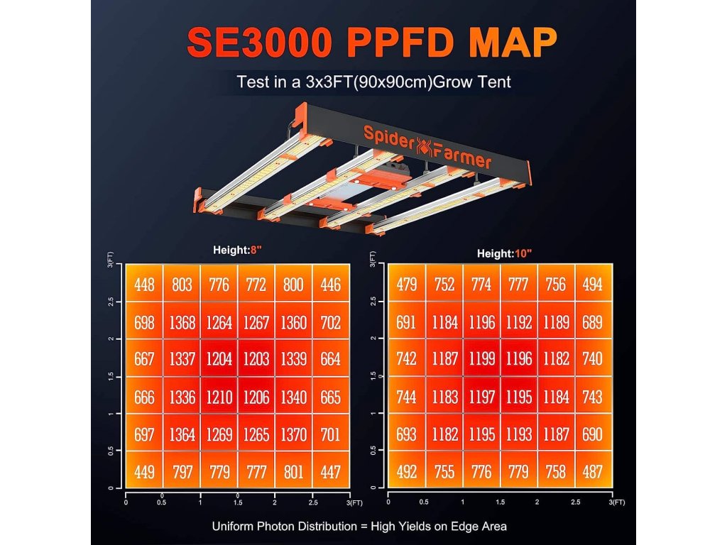 MAXIMÁLNÍ ÚČINNOST - 4-LED lišty poskytují rovnoměrnější pokrytí vrchlíku, zejména na vnějších okrajích pěstebních oblastí. 896ks diod SAMSUNG LM301 a odběr 300 wattů s 822,82 umol/s, dosažení působivého PPE 2,75 umol/J, pokrytí pro 90x90 cm vysoce výnosného růstu v celém cyklu.