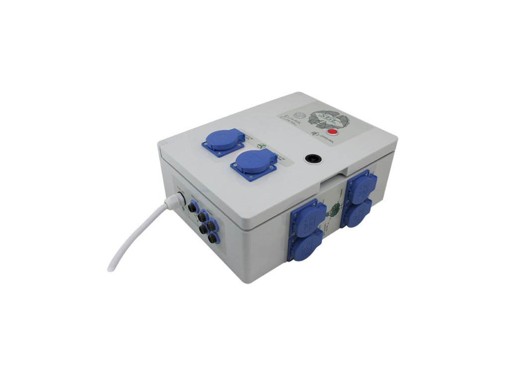 4 zásuvky vpravo (modré) - pro připojení elektronických předřadníků, topení, zvlhčovače, odvlhčovače apod.