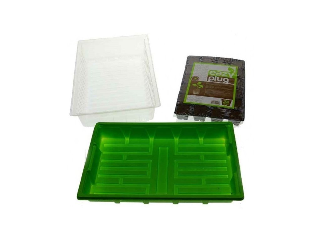 Skleníček z měkkého plastu + sadbovač s Eazy Plug kostičkami pro 24 rostlin.