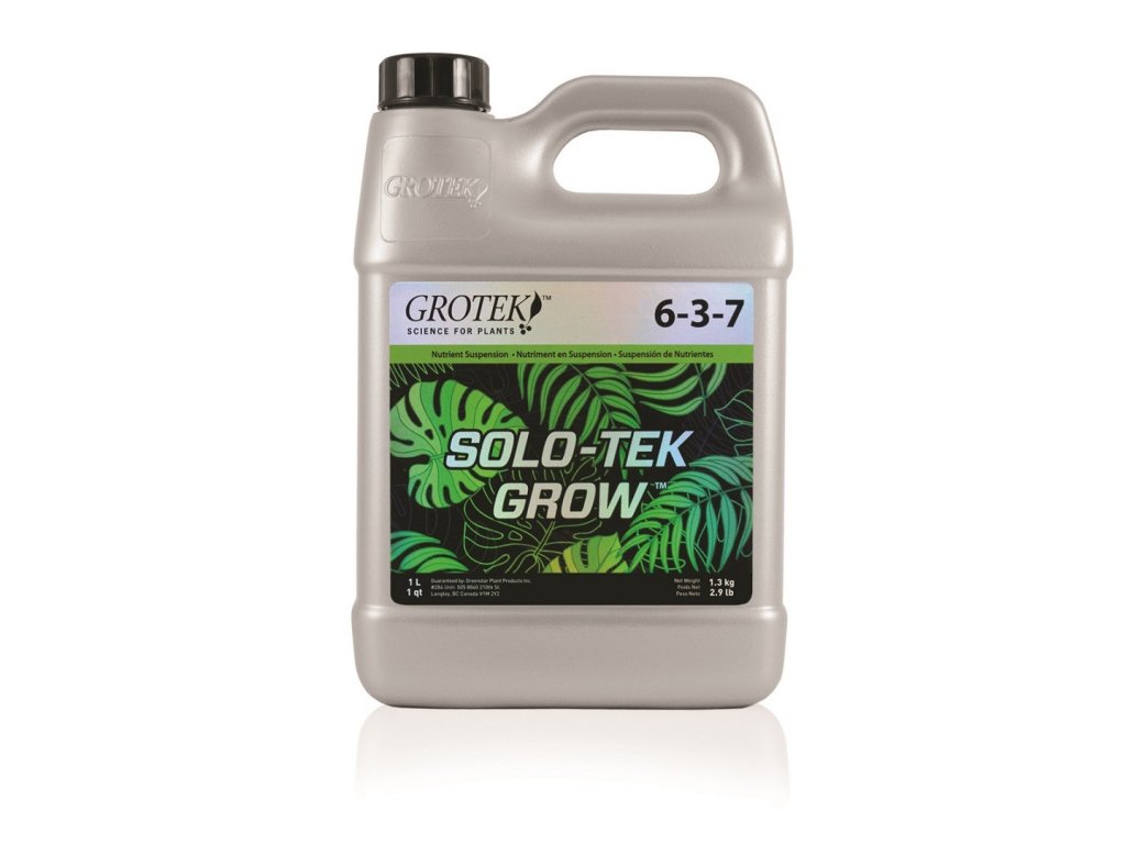 Grotek Solo-Tek Grow je snadno aplikovatelné jednosložkové organominerální tekuté hnojivo, které je určeno pro rostliny ve vegetačním období. Bylo navrženo tak, aby rostlinám poskytovalo všechny potřebné makro i mikro prvky, které potřebují ke zdravému růstu. Dále jsou v hnojivu obsaženy huminové kyseliny pro dostatečný příjem živin. Právě vysoká koncentrace huminové kyseliny zajišťuje dopravu živných látek do celé rostliny a má pozitivní vliv na biologii v půdě. Vysoká hladina vápníku pak zajišťuje silnou strukturu rostlin. Mikroživiny pomáhají rostlinám k vyšší sklizni na konci sezóny. Solo-Tek Grow je velmi vhodný pro pěstování v půdě, ale je možné jej použít i v hydroponii.