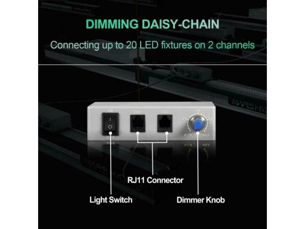 ?? Funkce Daisy Chain Dimming? Přidán knoflík stmívače, pohodlnější pro nastavení jasu. Řetězit lze až 15 světel a ovládat je společně na jediném světle.