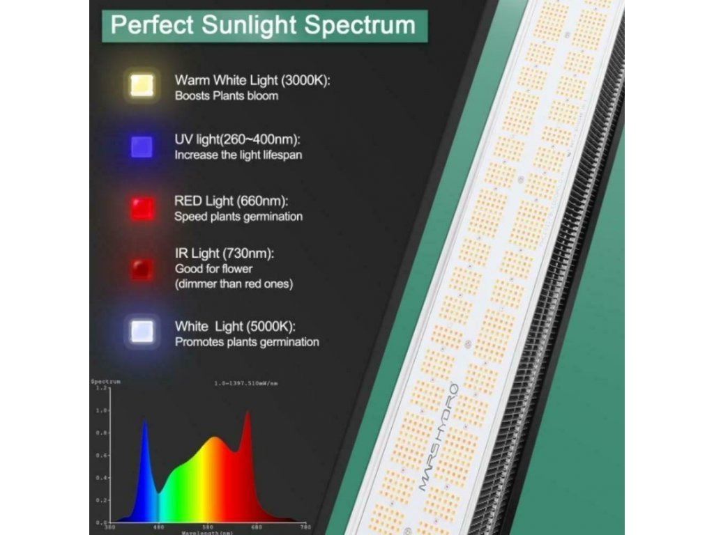 ?? Vylepšené sluneční spektrum Full Spectrum? Přidáno více teplých bílých a červených čipů, což je mimořádně dobré pro rostliny ve všech fázích od vegetace po kvetení.