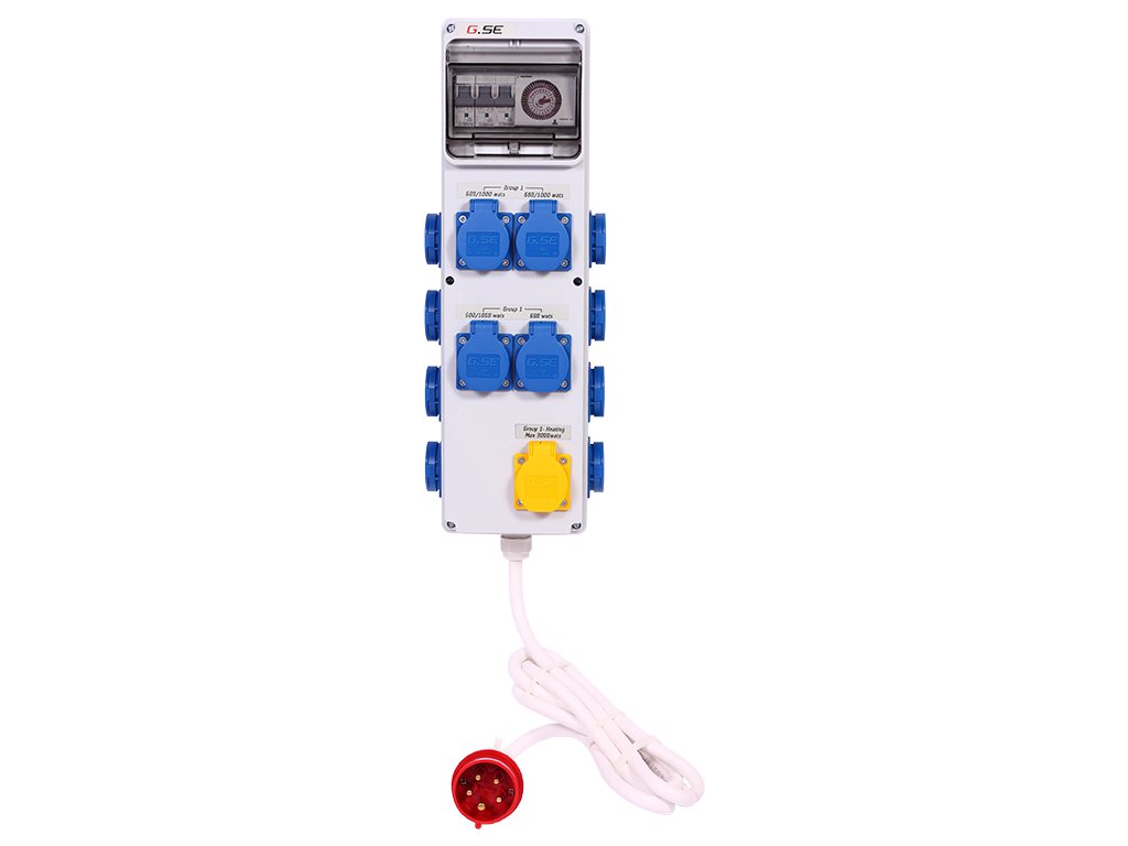 Vylepšený GSE rozvaděč s časovačem Timer Box III 12x600W,400V je sestaven z kvalitních komponentů.