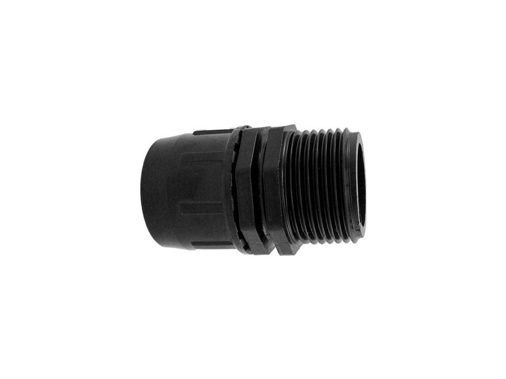 Přípoj vnější závit do tlakové závlahy Irritec. Průměr 25 mm (1″) x 3/4″. "Easy" komponenty se snadno instalují a díky plastové matce jsou chráněny před vyškubnutím z hadice.