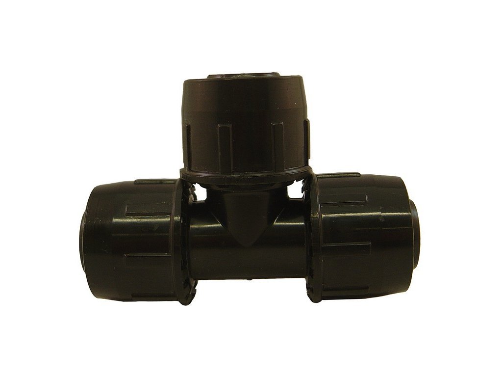 PE díl pro tlakovou závlahu, T spoj pro hadice o průměru 20 mm. Závlahová komponenta "Easy" se snadno instaluje a je chráněna proti vyškubnutí.