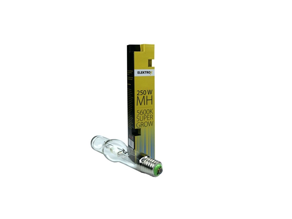 Nejlevnější metalhalidová výbojka Elektrox Super Grow 250W MH na růst s nižší wattáží startuje za 3-5 minut. Výbojka se světelným tokem cca 18 000 lumenů poskytuje rostlinám modrobílé světelné spektrum (5600K). Toto světlo rostlina potřebuje v růstovém období, protože pomáhá rozvíjet zejména stonky, listy a zelenou hmotu.