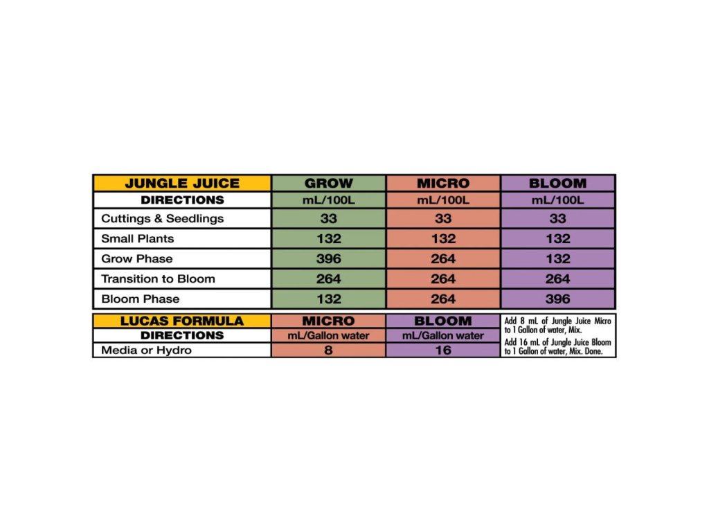 Advanced Nutrients Jungle Juice Grow-Micro-Bloom je 3 složkové hnojivo s "indoor" formulí, která zásobuje rostliny přesným množstvím živin celý cyklus.